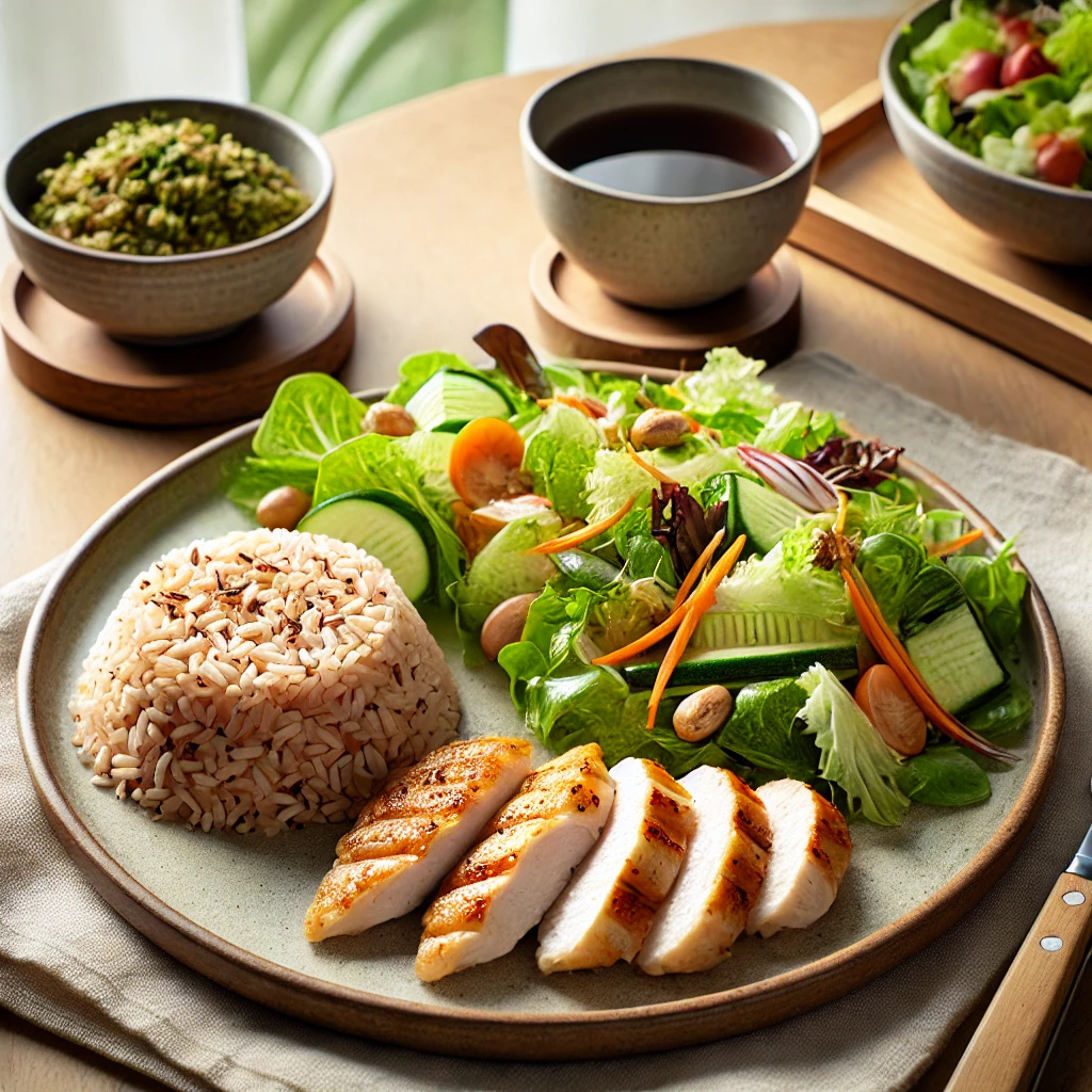 신선한 채소, 과일, 단백질(닭가슴살, 두부, 달걀 등), 통곡물(현미, 오트밀) 등을 기본으로 하세요. 그리고 패스트푸드는 가급적 피하고, 가공식품 대신 자연식품을 선택하는 것이 중요합니다.